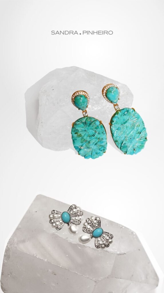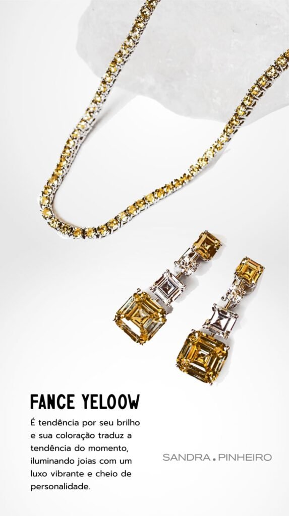 Joalheria Sandra Pinheiro revela o brilho e a leveza da nova temporada. A designer Sandra Pinheiro apresenta as novidades da semana: joias inspiradas nas cores e pedras que são tendência da temporada. As criações exploram o contraste entre o frescor da turquesa, símbolo de proteção e boas energias, e o brilho radiante do fancy yellow, tom sofisticado que traduz alegria e elegância.