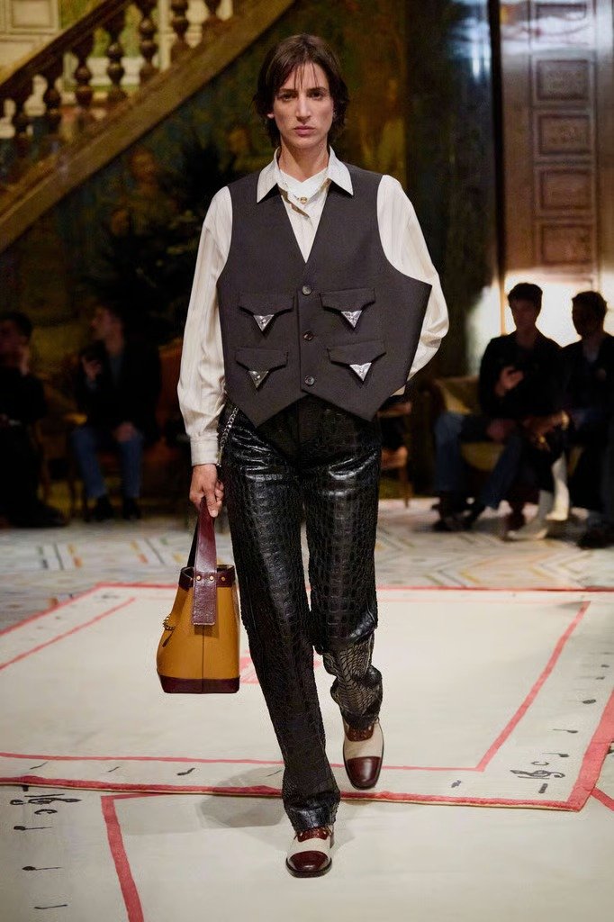 O couro deixou de ser exclusividade do outono. Agora, ele surge leve, repaginado e com um toque de rebeldia chique que só os italianos sabem dosar. Prada apostou em vestidos estruturados com cinturas marcadas; Fendi brincou com recortes e transparências; e Gucci provou que a textura pode ser fresca quando bem combinada.