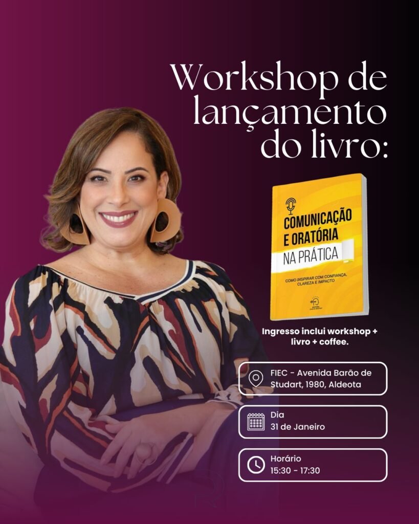 Vem aí! Workshop + lançamento do livro“Comunicação e Oratória na Prática”, dia 31, na FIEC