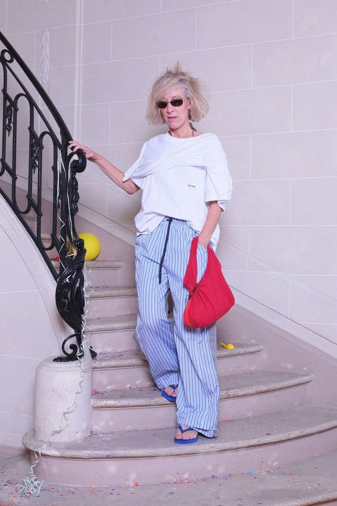 Nas semanas de moda, o destaque foi total. Na Balenciaga, Pierpaolo Piccioli deu um novo fôlego à grife com uma coleção mais leve e refinada. O toque de ousadia? Chinelos aveludados com salto reto, contrastando com vestidos de seda e saias de plumas em tons vibrantes. O visual, que poderia soar improvável, virou tendência instantânea: luxo despretensioso, com aquele ar de “acordei chique sem esforço”.