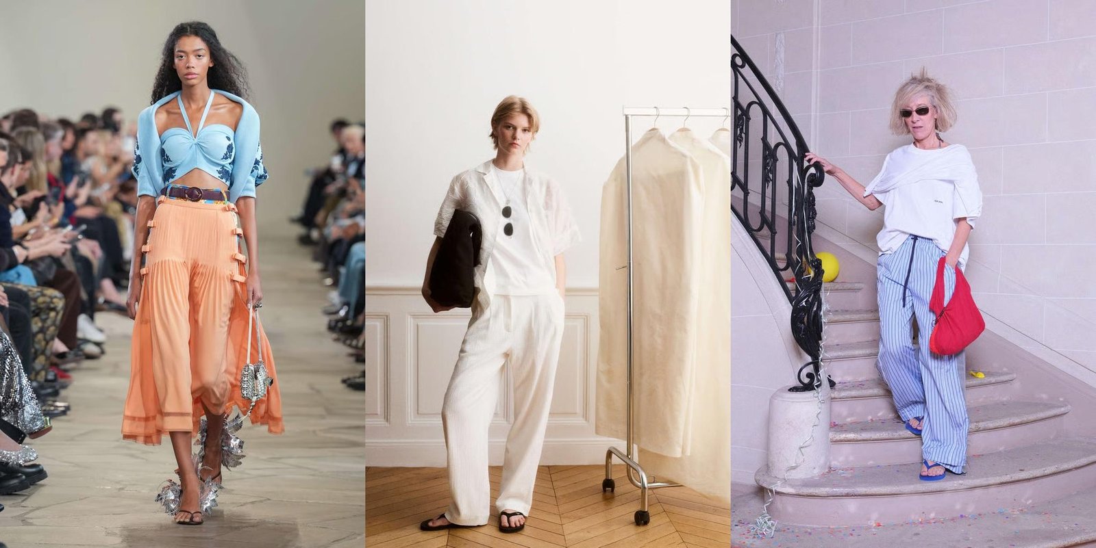 Nas semanas de moda, o destaque foi total. Na Balenciaga, Pierpaolo Piccioli deu um novo fôlego à grife com uma coleção mais leve e refinada. O toque de ousadia? Chinelos aveludados com salto reto, contrastando com vestidos de seda e saias de plumas em tons vibrantes. O visual, que poderia soar improvável, virou tendência instantânea: luxo despretensioso, com aquele ar de “acordei chique sem esforço”.