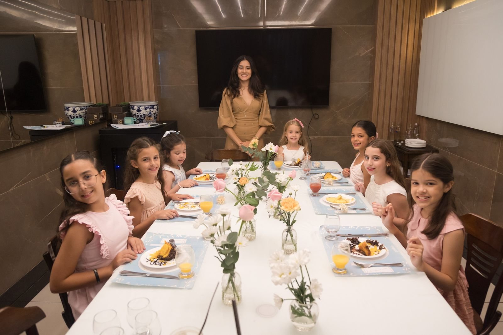 A experiência inclui dinâmicas práticas, lanches temáticos, vivências com louças, degustação guiada e até oficina simples de arranjos florais, tudo adaptado ao universo de cada idade.