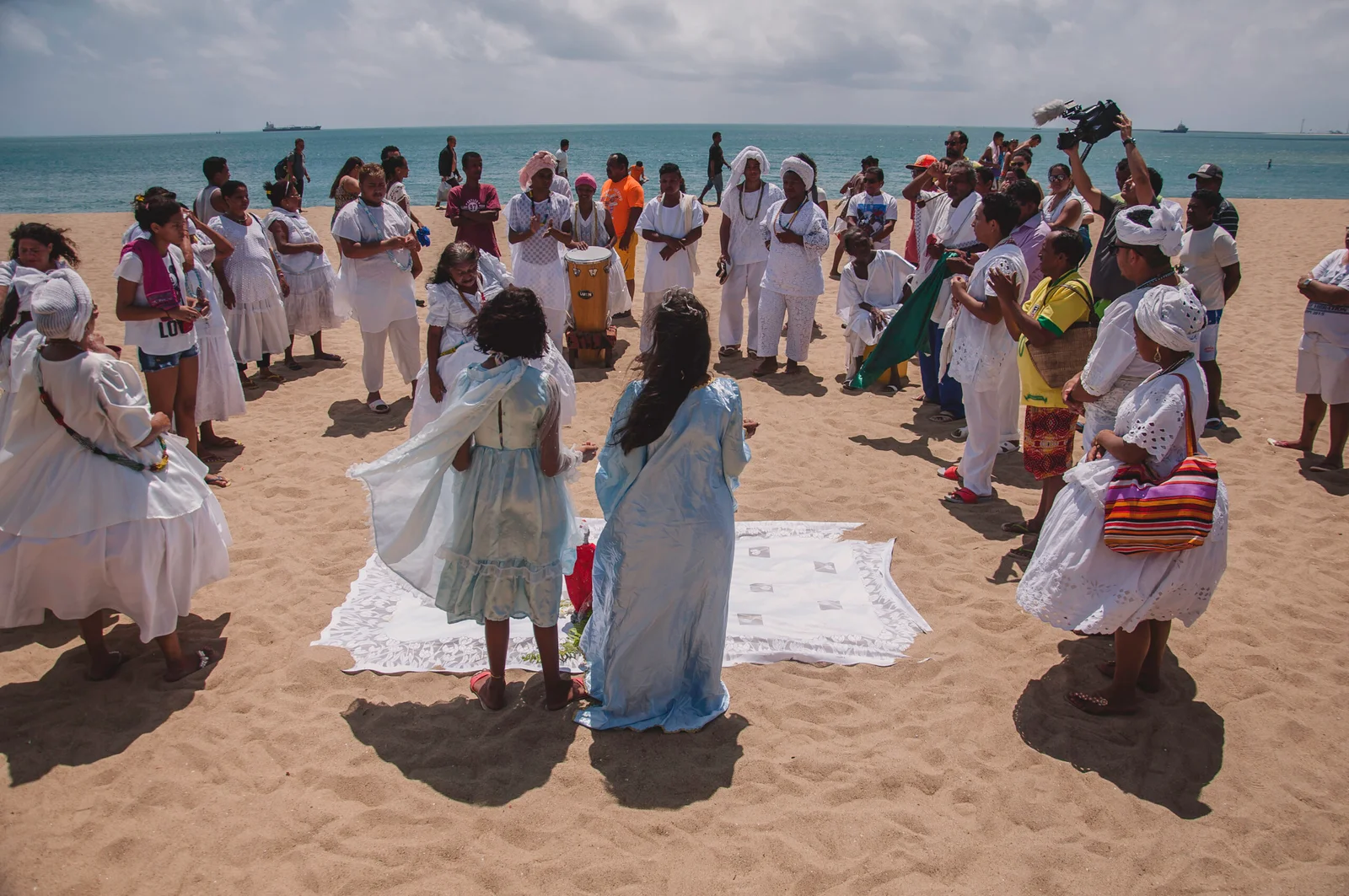 Com curadoria do antropólogo e pesquisador Jean dos Anjos, a exposição apresenta registros fotográficos produzidos em 2016 por Flávia Almeida, Beto Skeff, Éden Barbosa, Luiz Alves, Manuel Filho, Allan Taissuke e pelo próprio curador. As imagens fazem parte do processo de salvaguarda da Festa de Iemanjá como Patrimônio Cultural Imaterial de Fortaleza, reconhecida oficialmente em 2018, e retratam momentos que destacam a força simbólica da celebração como manifestação de fé, resistência e pertencimento.