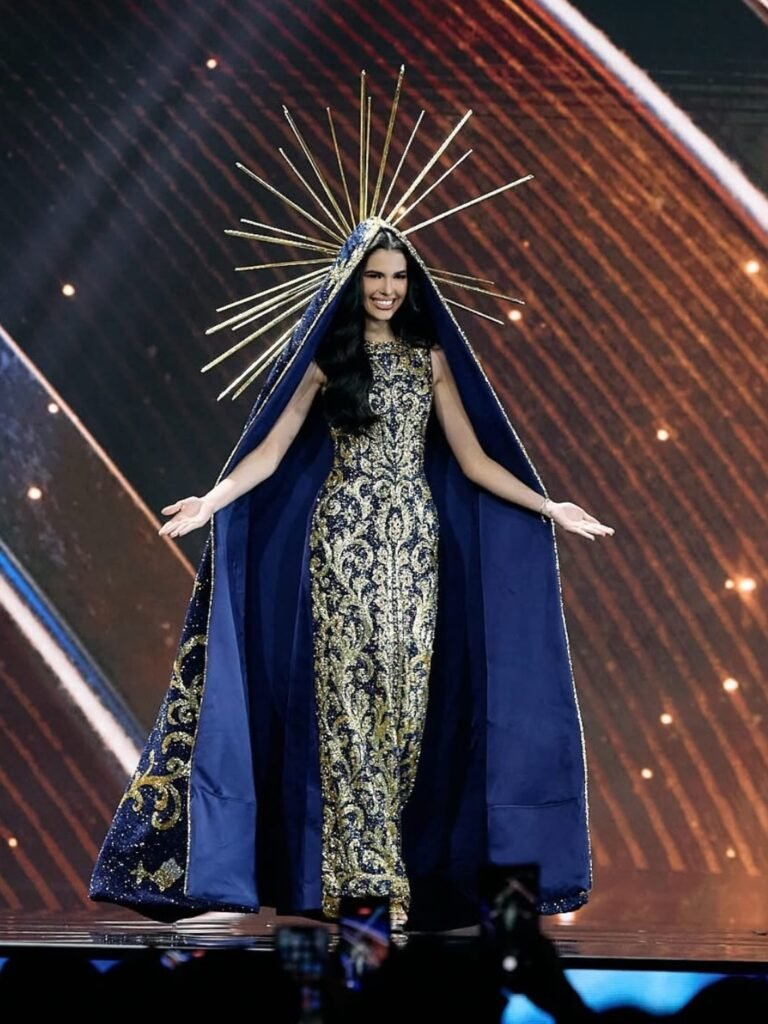 Maria Gabriela brilhou sob luzes intensas com seu vestido dourado, manto reluzente e um adorno de cabeça em raios luminosos, reverenciando a padroeira do Brasil em um dos palcos mais assistidos do mundo. Em suas redes sociais, a representante brasileira descreveu o traje como muito mais do que uma roupa: afirmou vestir a história, a fé e a identidade de um povo cuja luz atravessa gerações e simboliza resistência. A miss destacou também que carrega consigo a força das mulheres brasileiras, a devoção que molda a cultura e o orgulho de representar um país que se reinventa e persiste, mesmo diante dos maiores desafios. “É o Brasil que caminha comigo. É a fé que me sustenta”, resumiu, em uma declaração que viralizou.