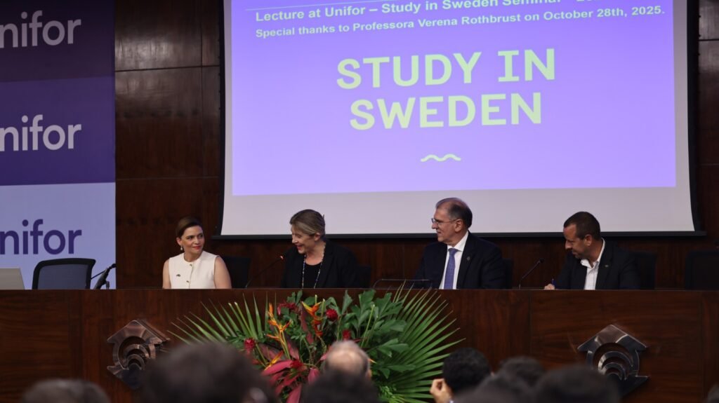 Com a presença de diversas personalidades diplomáticas de países europeus e sul-americanos, além de autoridades governamentais e municipais, a Universidade de Fortaleza (Unifor) — instituição vinculada à Fundação Edson Queiroz — sediou, na terça-feira (29), a solenidade de abertura do novo Consulado Honorário da Suécia em Fortaleza. Na ocasião, foi empossada a nova cônsul honorária, professora do curso de Arquitetura e Urbanismo da Unifor, Verena Rothbrust. O momento contou com a presença da embaixadora do Reino da Suécia no Brasil, Karin Lovisa Wallensteen; da presidente da Fundação Edson Queiroz, Lenise Queiroz; e do reitor da Universidade, Prof. Dr. Randal Martins Pompeu.
