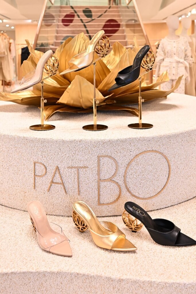 O destaque da coleção é a Flor de Lótus, símbolo escolhido para marcar o início dessa nova fase. Ela surge reinterpretada em diferentes modelos, especialmente nos saltos com design floral, e representa o renascimento e a força feminina, valores que orientam a filosofia criativa da PatBO. Essa iconografia não apenas reforça a identidade visual da marca, como também imprime emoção e significado à coleção, transformando cada sapato em um objeto de desejo e expressão.