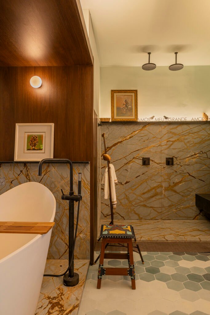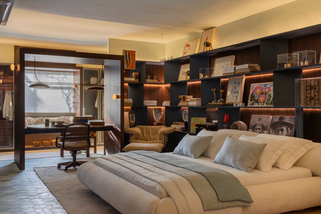 Na edição de 2025, ele assina a suíte “Ala do Casal”. Nesse ambiente, o romantismo encontra a sofisticação. A cama central é o coração do projeto, enquanto a integração entre quarto, banheiro e closet reforça a ideia de fluidez e praticidade no cotidiano. Cores suaves, jardins com rosas do deserto e obras de arte exclusivas, como as do artista plástico Vando Figueiredo, compõem a atmosfera premium, pensada para exaltar conforto e expressar a identidade dos moradores.