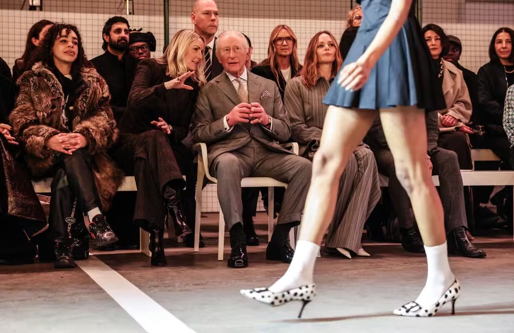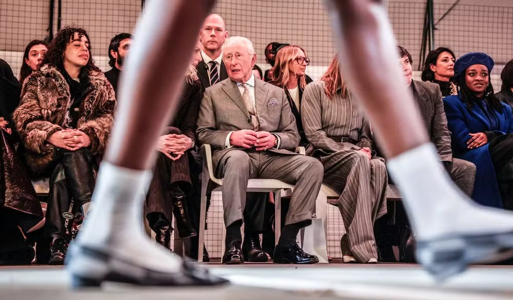 Na quinta-feira que marcou o início da London Fashion Week Outono/Inverno 2026, quem chamou a atenção não foram apenas as roupas nas passarelas, mas um convidado bem fora do script fashion: King Charles III, sentado em destaque na primeira fila do desfile de Tolu Coker, sensação criativa britânico-nigeriana que abriu a temporada no icônico espaço NewGen em 180 Strand, em Londres.