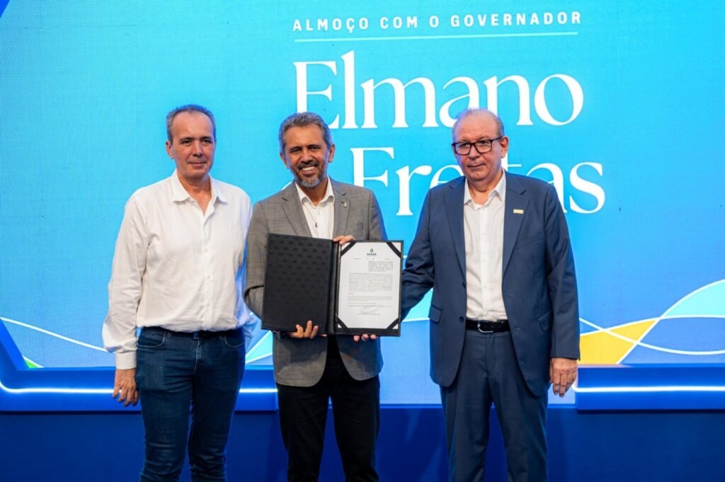 O presidente da Federação das Indústrias do Estado do Ceará (FIEC), Ricardo Cavalcante, recebeu, na sexta-feira, o governador Elmano de Freitas no tradicional almoço anual promovido pelo Sistema FIEC, na Casa da Indústria.