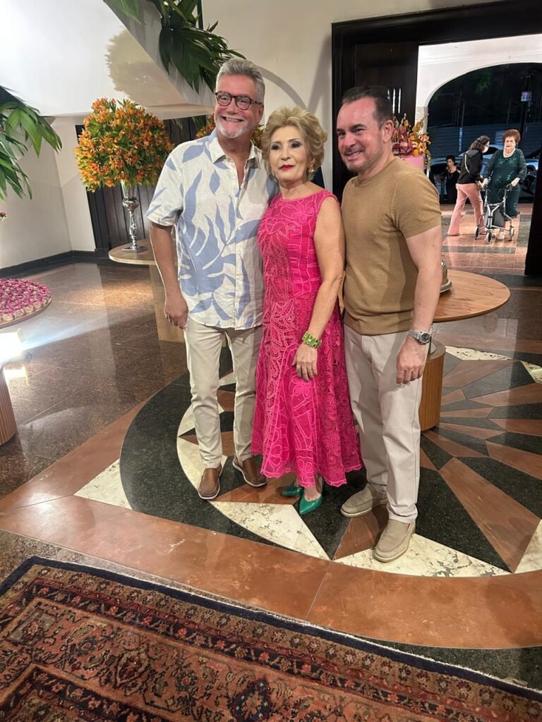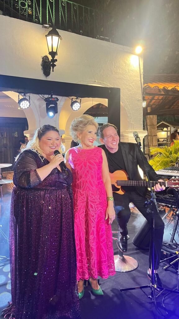 Philipe Dantas, sempre com seu show vibrante, Darlington e Diná Leia, dupla de vozes afinadíssimas, e o pianista Paulo Rodrigo, que vem conquistando novos espaços com sua arte. Destaco também o magnífico bolo de Marilza Pessoa, os bem vividos de Célia Bezerra, os doces artísticos da Toca Fina Cozinha, a mobília elegante do Lugar de Festa Locações e o apoio do Lullas nas mesas e peças de pratas. Os convites assinados pelo querido Leo Oliveira.