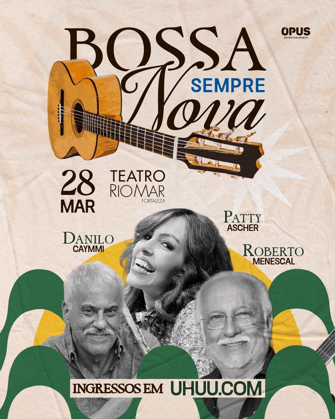 Marque na agenda, pois esse show chega ao palco do Teatro RioMar Fortaleza dia 28 de março de 2026. A Bossa Nova estará de volta em uma noite inesquecível com Bossa Sempre Nova, reunindo três grandes nomes da música: Roberto Menescal, um dos fundadores do movimento, a cantora Patty Ascher, dona de uma voz sofisticada e presença marcante, e Danilo Caymmi, herdeiro de um dos legados mais importantes da MPB e intérprete consagrado.
