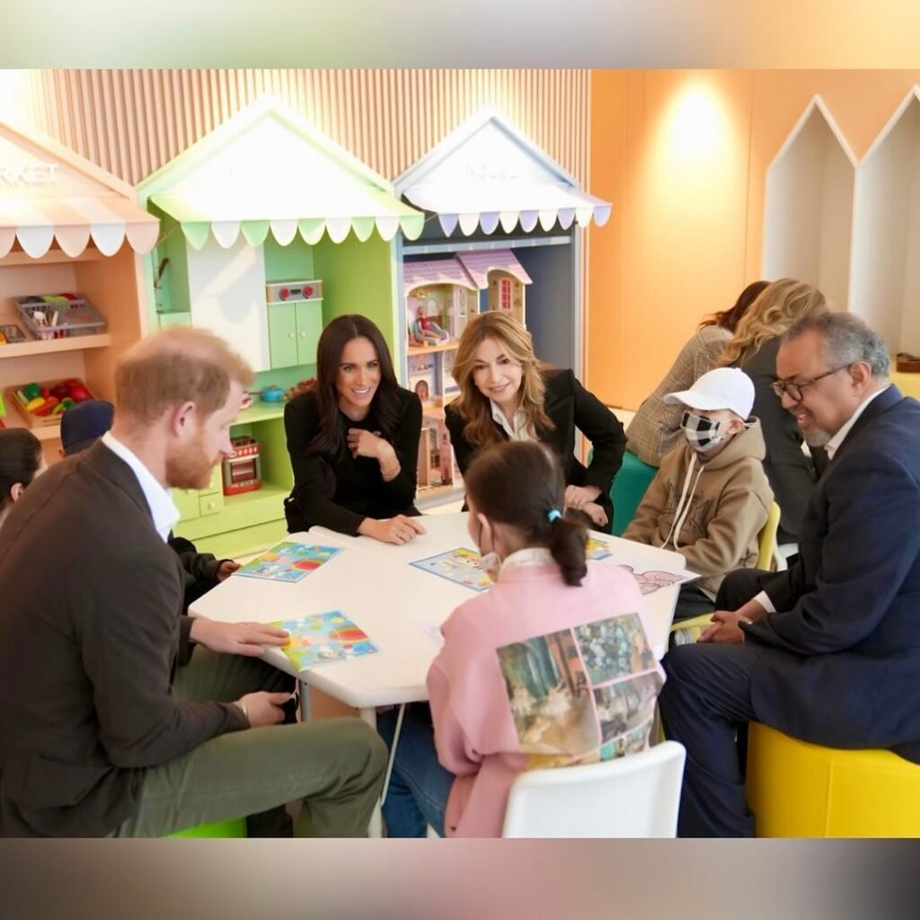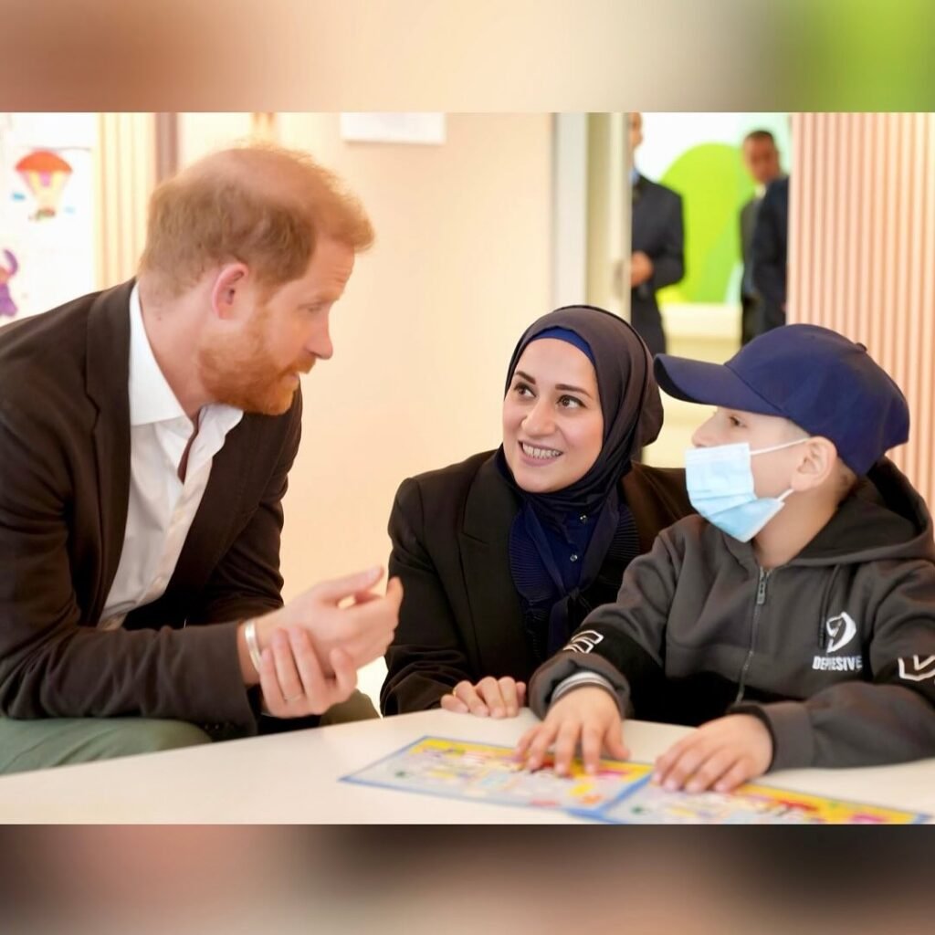Mas a Jordânia não foi só palco de campos de refugiados: o itinerário incluiu ainda encontros com crianças palestinas evacuadas de zonas de conflito e internadas em hospitais para tratamento médico, além de uma visita a centros de saúde, como o Speciality Hospital em Amã, onde Harry e Meghan puderam ver de perto desafios de acesso a cuidados e conversar com pacientes e profissionais sobre necessidades em saúde física e mental.